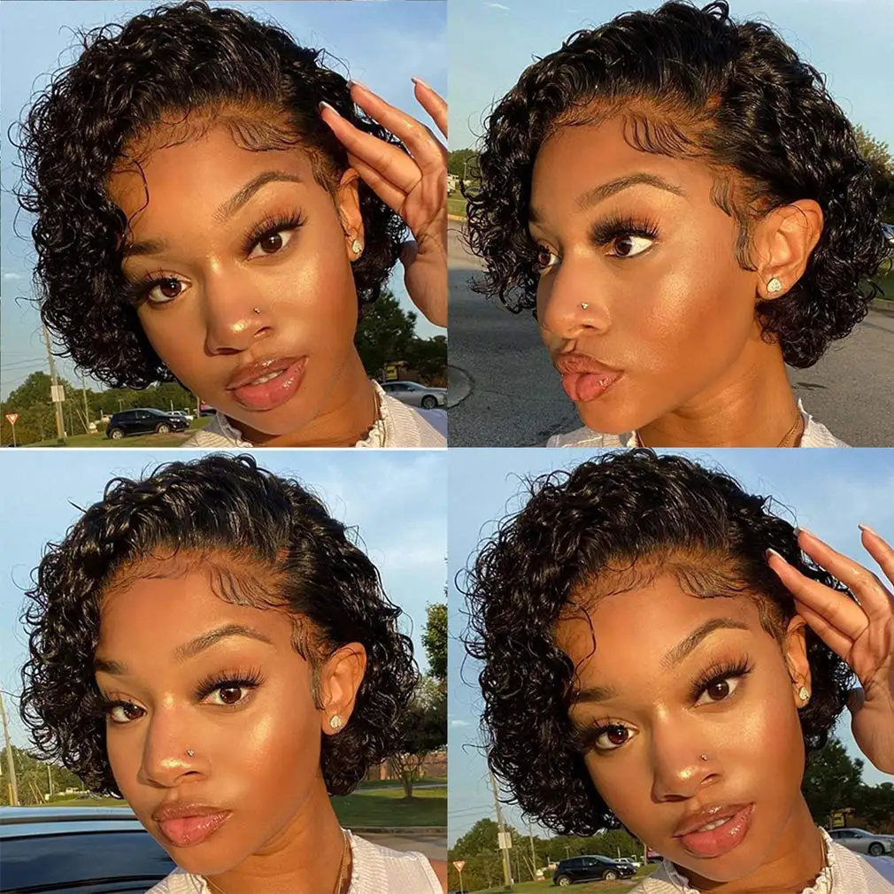 Парик Pixie Cut, Короткие вьющиеся человеческие волосы, парики, дешевые человеческие волосы, парик под $40