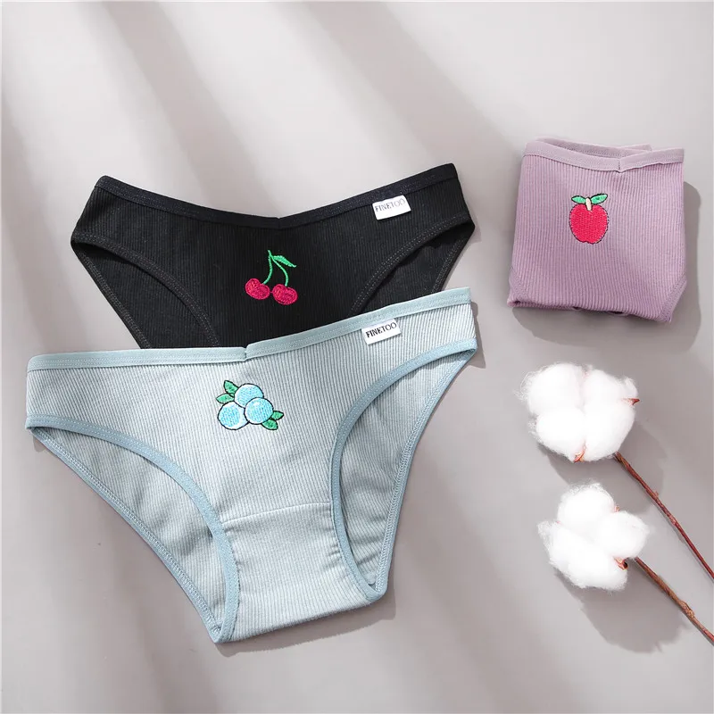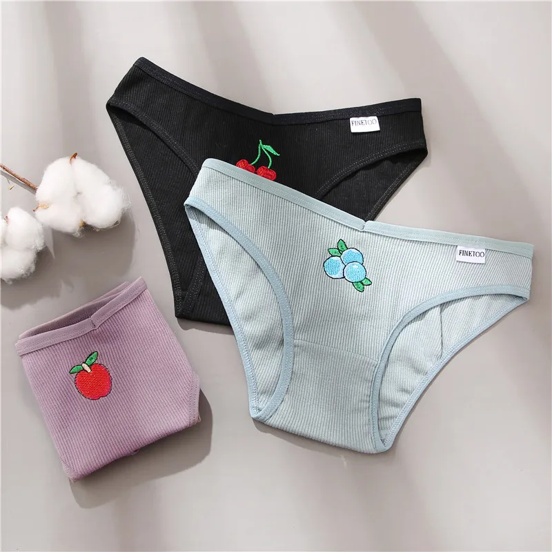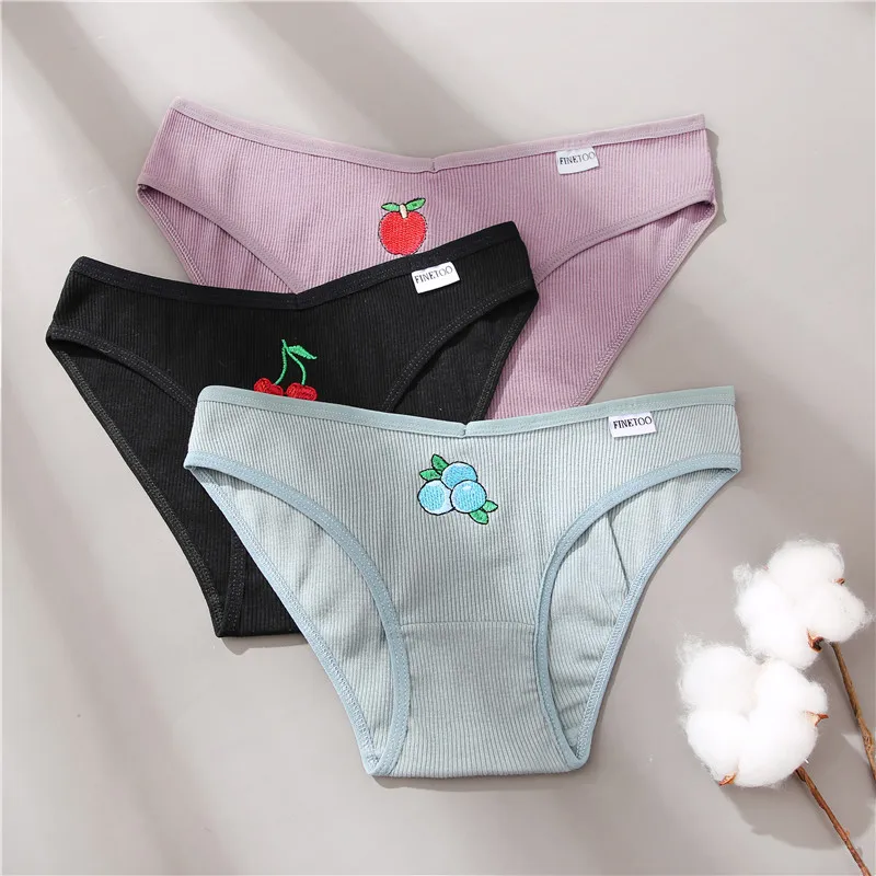 Товар: FINETOO 3 шт./компл., женские хлопковые трусики, M-2XL нижнее белье с вышивкой фруктов размера плюс, трусы с низкой посадкой, женские трусы, трусы для девочекРазмер: M L XL XXLПосадка: растягивается