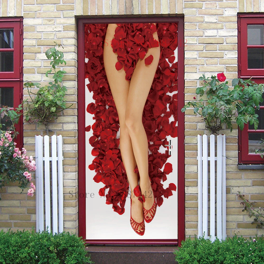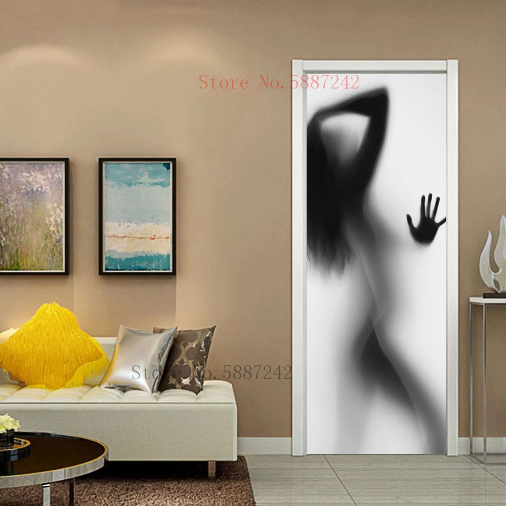 Виниловая самоклеящаяся дверная наклейка для женщин, для девочек, для комнаты, спальни, ванной комнаты, 3d обои, декор для стены, окна, постер, чехол