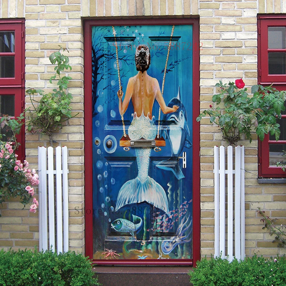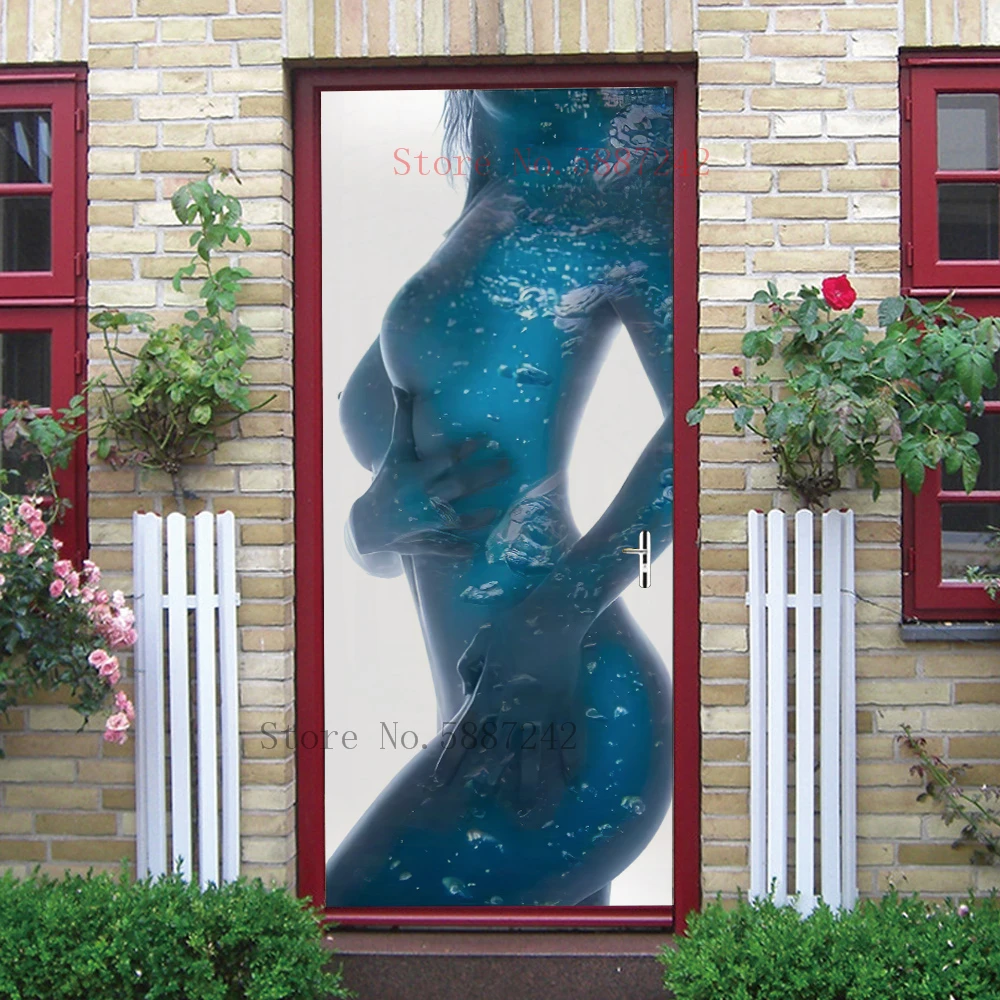 Виниловая самоклеющаяся наклейка на дверь для женщин для девочек, комната, спальня, ванная комната, 3d обои, декорация на стену, окно, украшение, постер, крышка