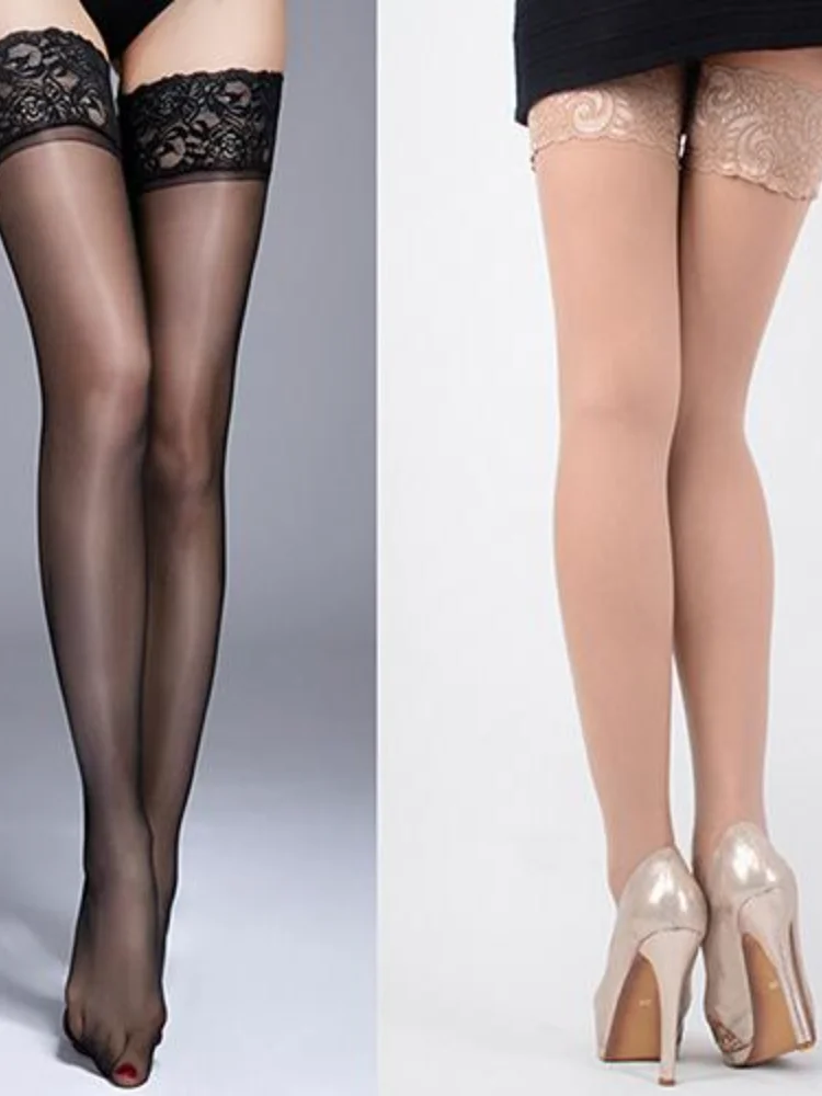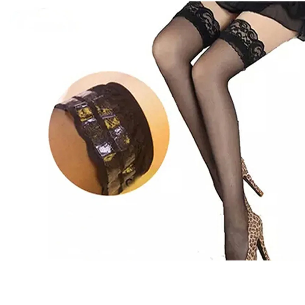 Сексуальные женские высокие чулки, кружевные топы, силиконовый ремешок, Нескользящие бедра, женские эротические чулки, колготки, кружевные женские
