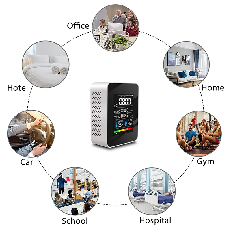 Это своего рода качественный детектор качества воздуха, компактный размер, легкий и портативный. Принимает большинство высокоточных датчиков TVOC, обнаружение в реальном времени, автоматическое обновление данных, с мульти-использованием. Большой ЖК-дисплей, вы можете видеть количество электроэнергии, значение CO2, значение TVOC, значение HCHO, температуру и влажность четко. Широкое применение: сельскохозяйственная посадка, тепличные овощи, производственный склад, обработка материалов, домашний интерьер, офисы и т. д.