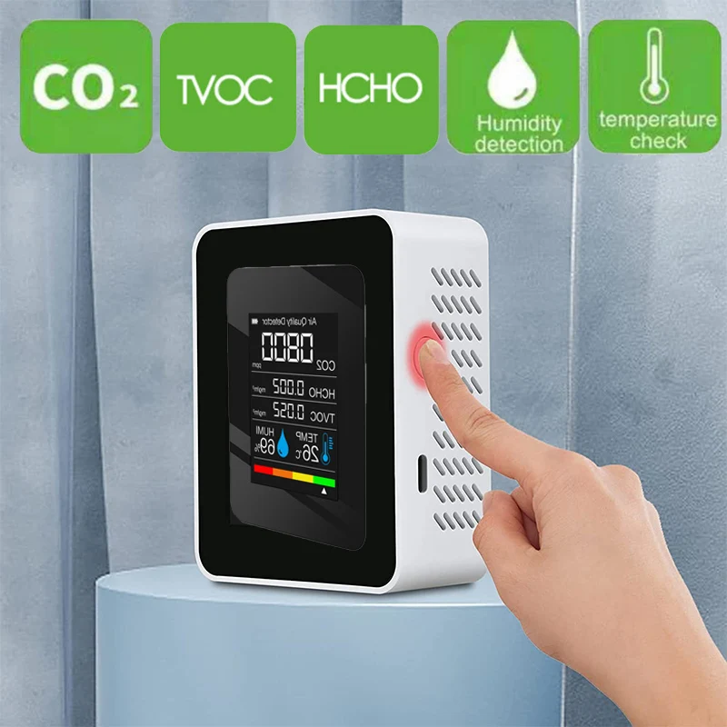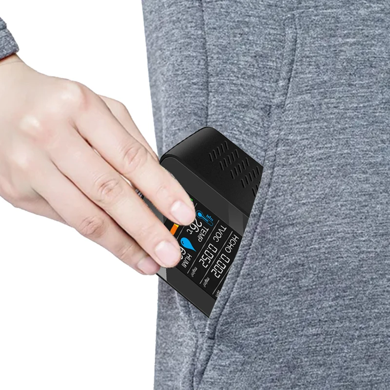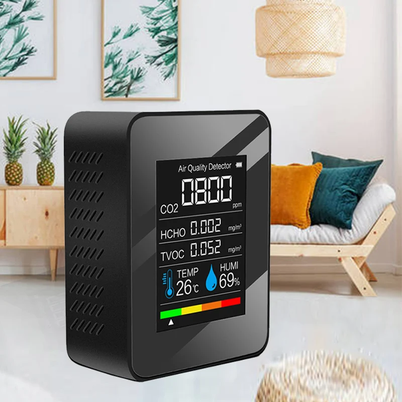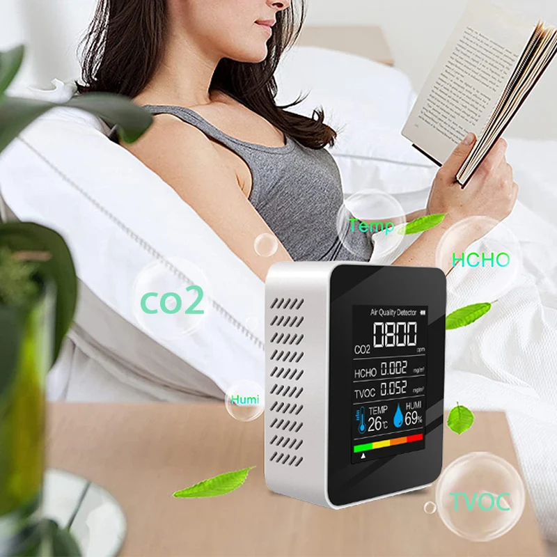 Большой ЖК-дисплей, вы можете видеть количество электроэнергии, значение CO2, значение TVOC, значение HCHO, температуру и влажность четко.