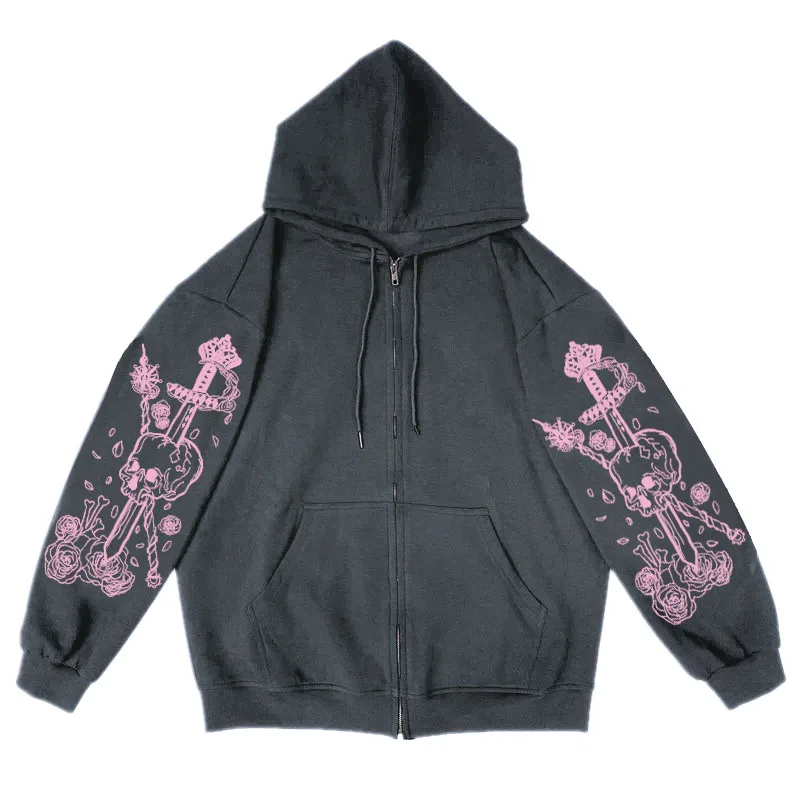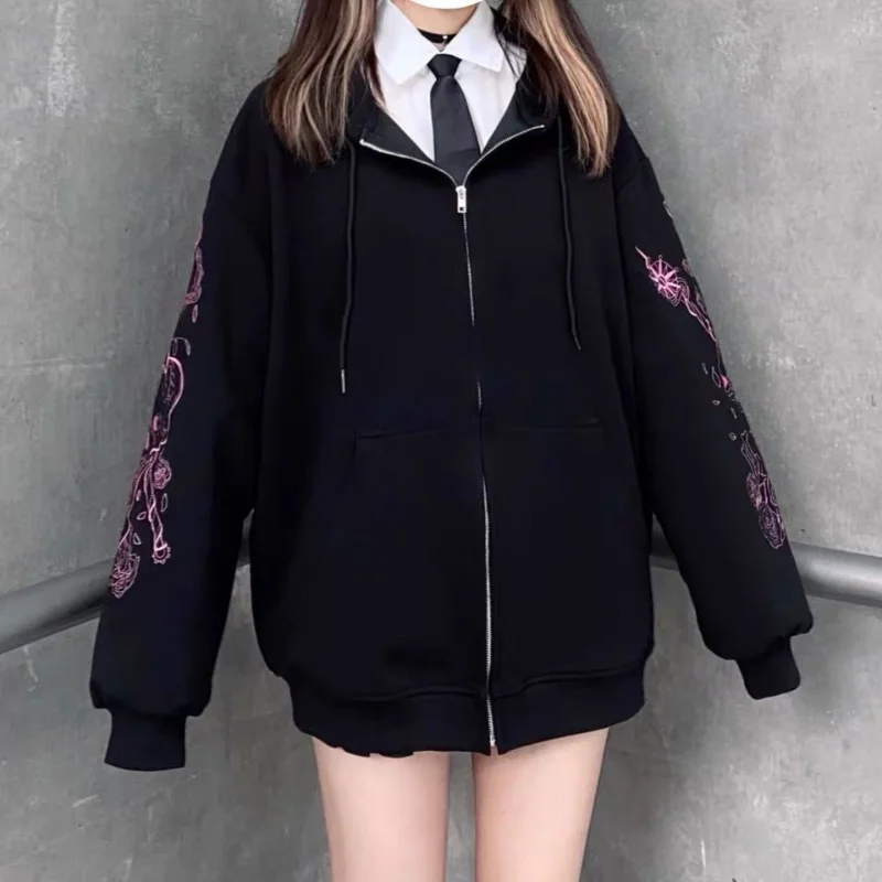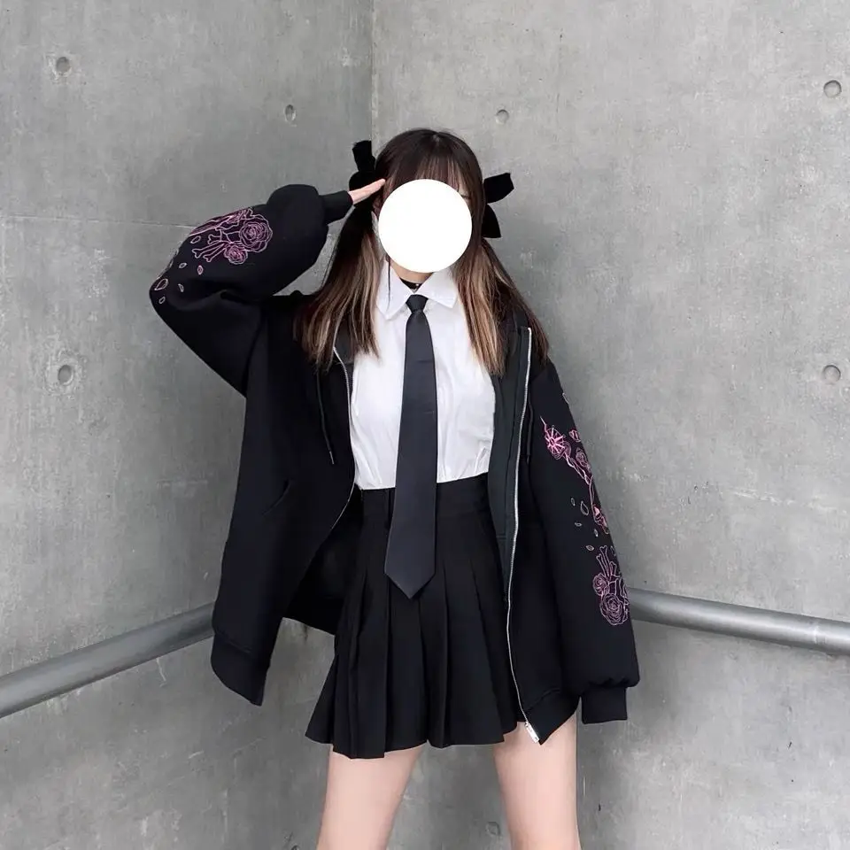 Панк E-girl на молнии Толстовка Готический гранж графическая вышивк...