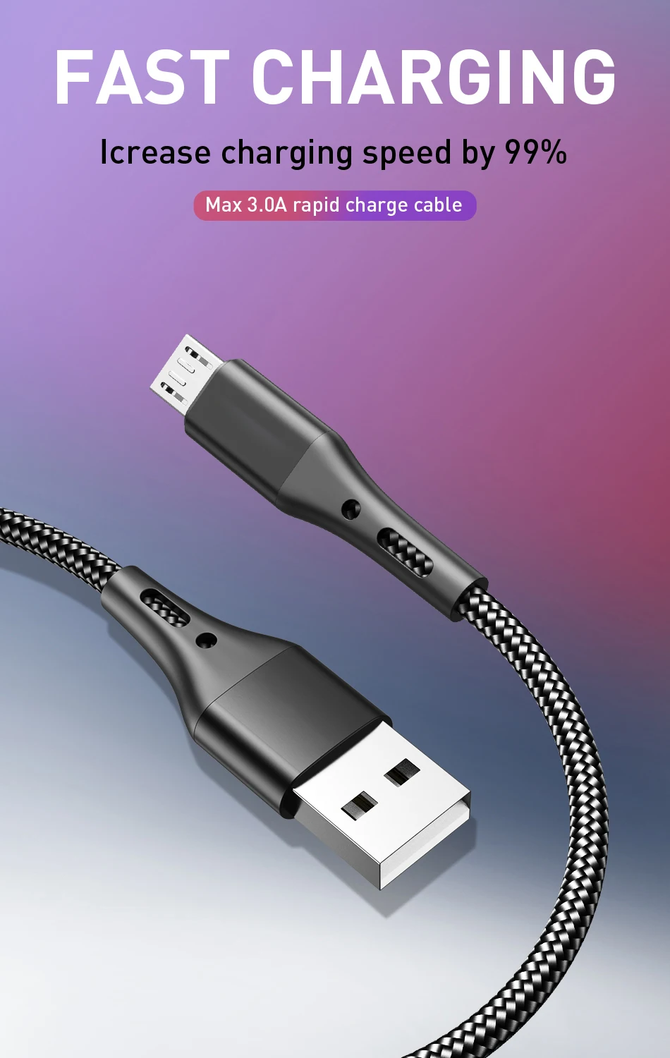 Feature 3USB Fast Charging Quick Charge 3.0 Cable Wire Cord
