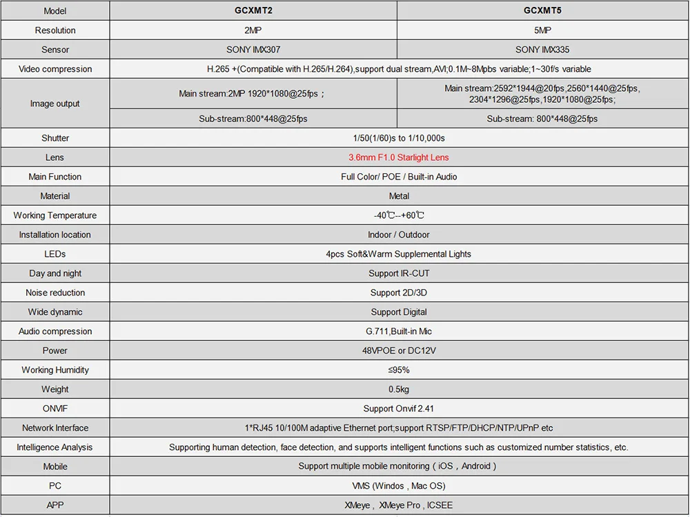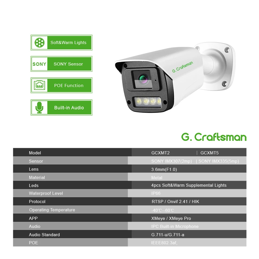 XMEYE полноцветная IP-камера F1.0 Объектив POE SONY сенсор 2MP 5MP IMX307 335 безопасность CCTV H.265 Водонепроницаемая аудио-и видеонаблюдение