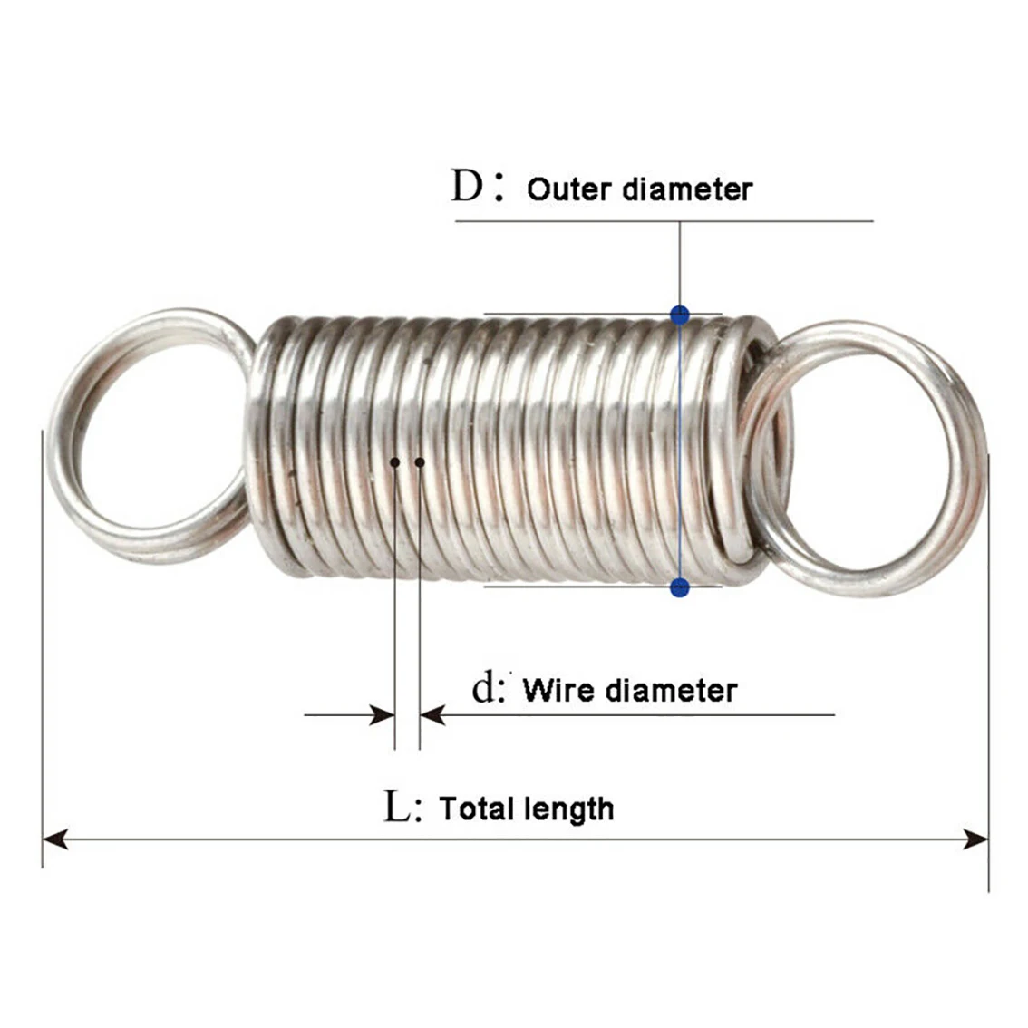 Удлинительная пружина из нержавеющей стали 304 с двойным крючком, диаметр 1 мм * Внешний диаметр 6-8 мм * длина 20-60 мм, 5 шт., 1 мм