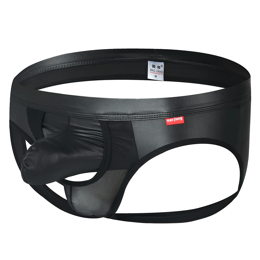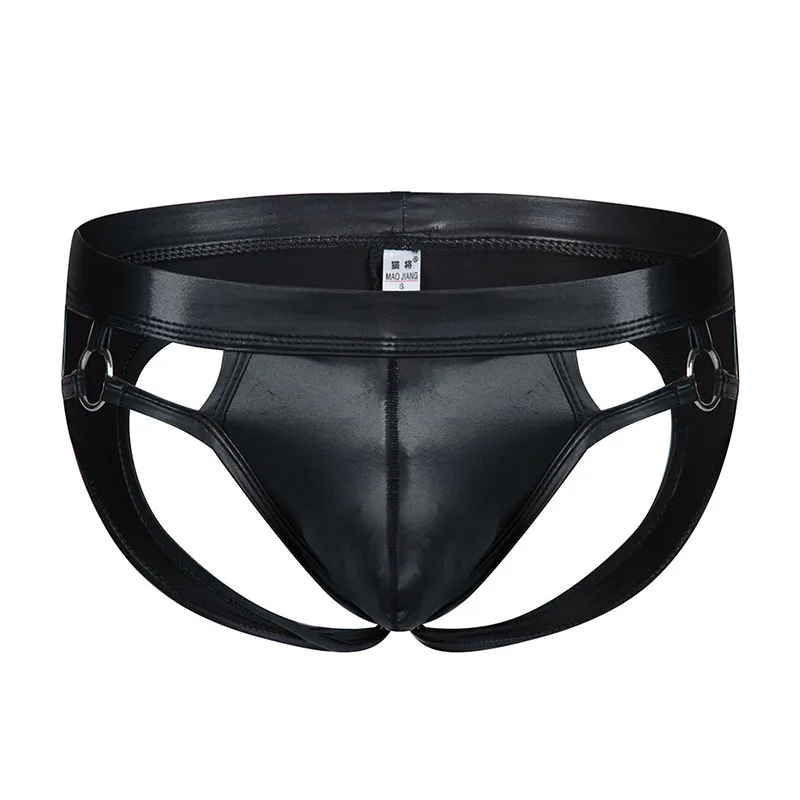 Мужские трусы джоки Gays, черные трусы брифы из кожи, с карманом для выпуклости, с открытой спиной, нижнее белье для мужчин,