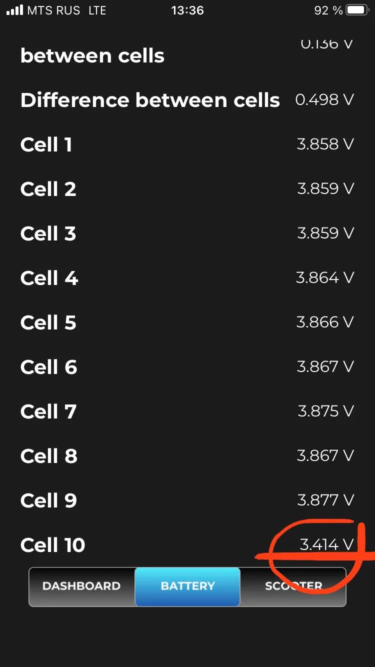 Ехал 60 дней. Вместо фиолетовых элементов оказались зеленые. Полностью заряженный проехал 3 км на скорости 18км/ч и выключился. В приложении показывает что 10 блок отстает на 240мВ. НОВЫЙ АККУМУЛЯТОР??? Это огромный обман. Деньги выброшены зря.