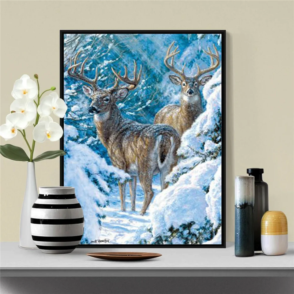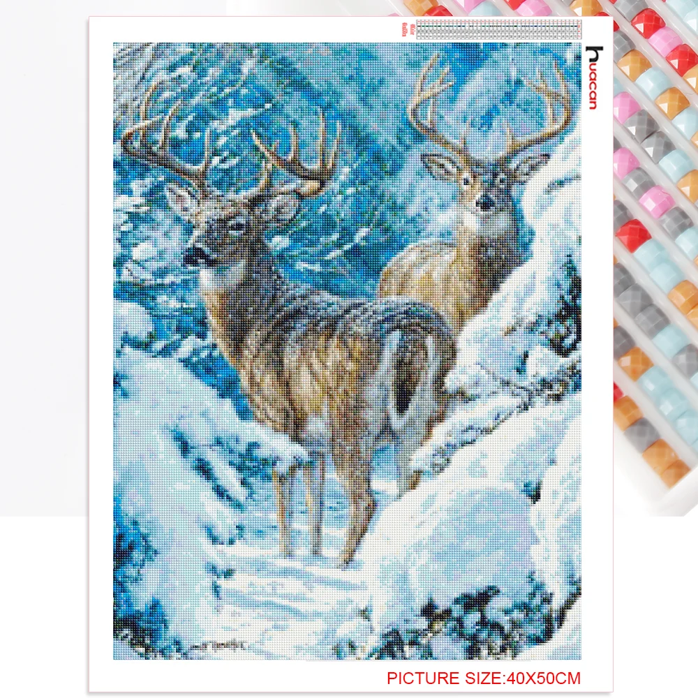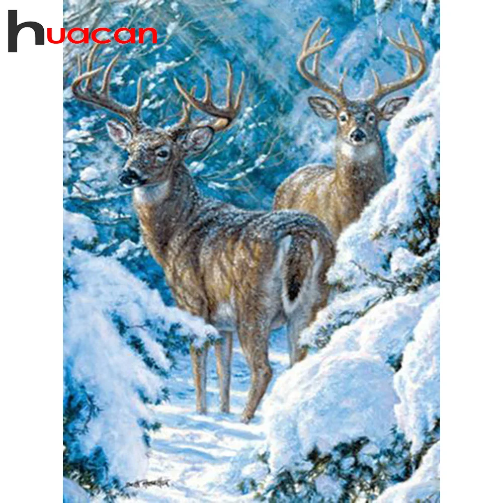 Алмазная вышивка Huacan полный комплект олень зима 5D алмазная живопись мозаика животные ручная работа украшение для дома