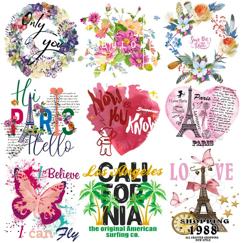Аппликация с мультяшным сердцем цветком, модные термонаклейки с бабочкой для одежды, переводная термонаклейка с изображением Эйфелевой башни для одежды