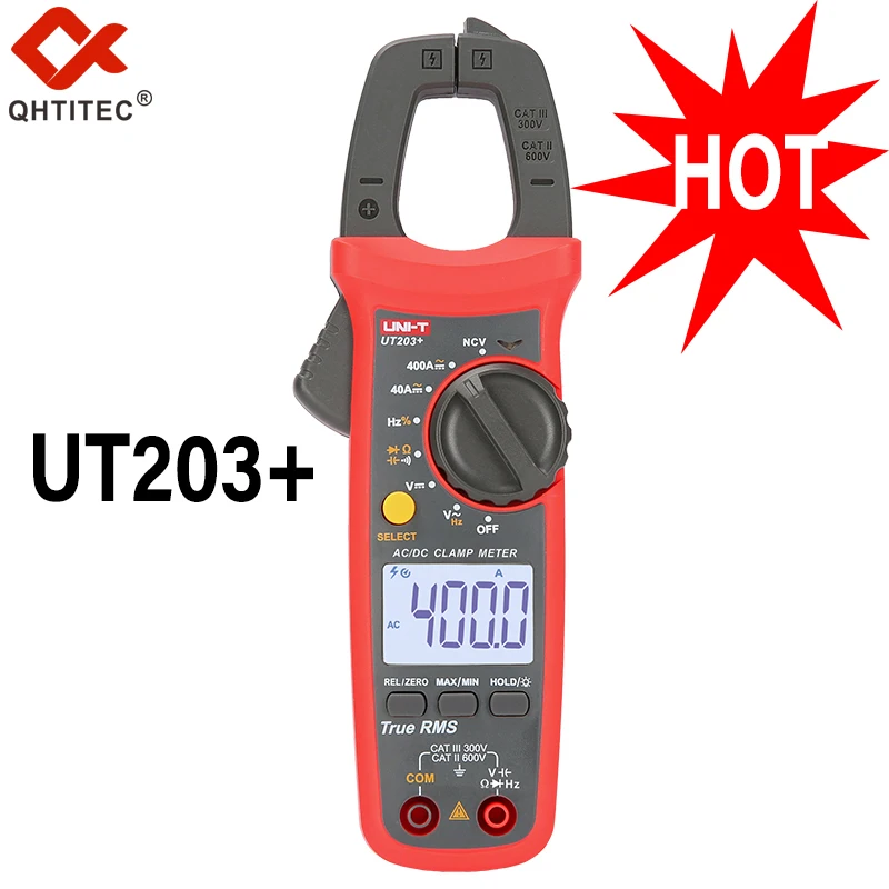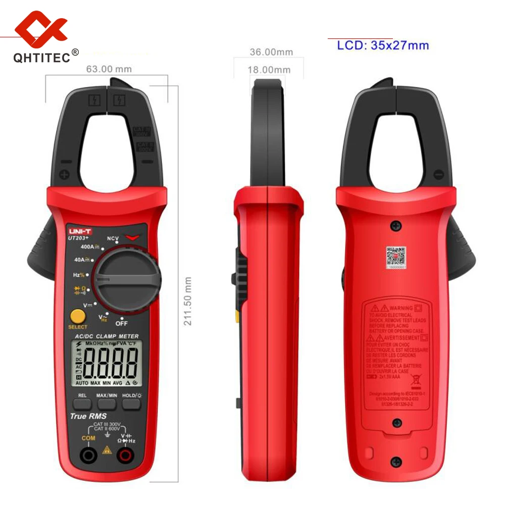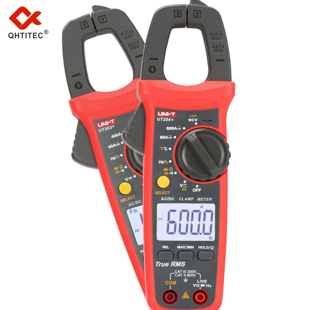 Высокоточный цифровой зажим-тестер QHTITEC Ture RMS 600A UT203 + Вольтметр постоянного и переменного тока тестер сопротивления амперметр с автоматическим диапазоном частоты