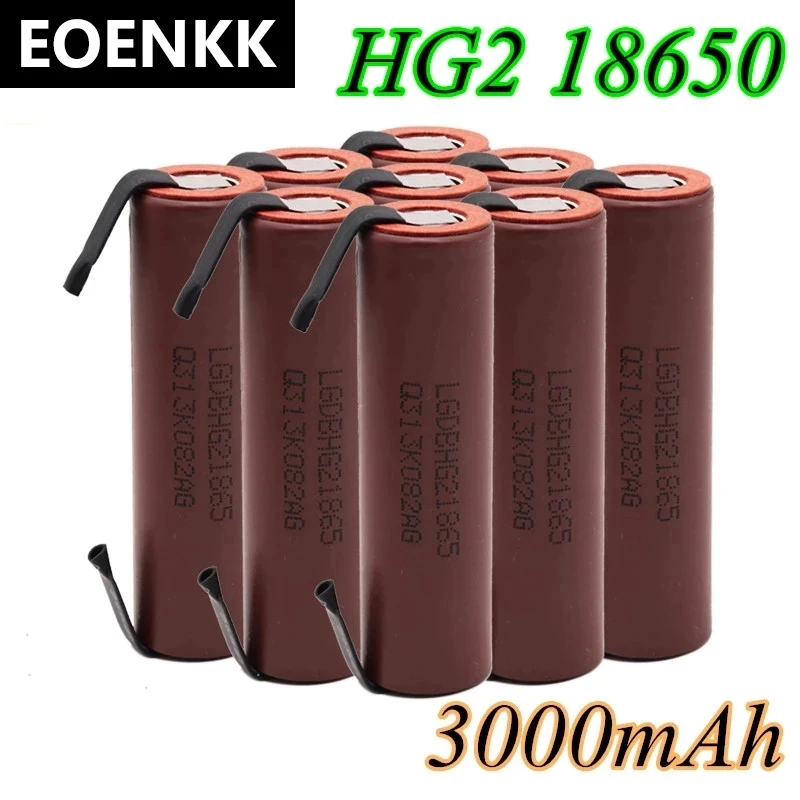 Аккумулятор HG2 18650 3000 мАч, с припаянными ушками, батареи для отверток, 30 А высокотоковые + DIY никелевые INR18650 HG2