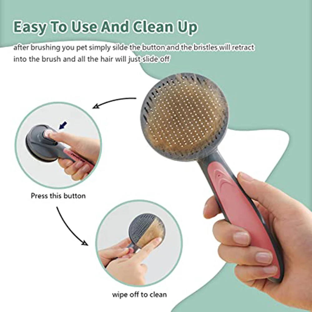 Самоочищающаяся щетка для домашних животных: подходит для длинных волос, средних волос, коротких волос, вьющихся волос, собак и кошек и других маленьких животных.
