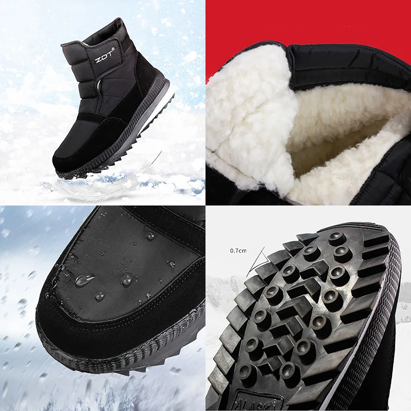 Теплые зимние ботинки, мужская обувь, толстые меховые Водонепроница...
