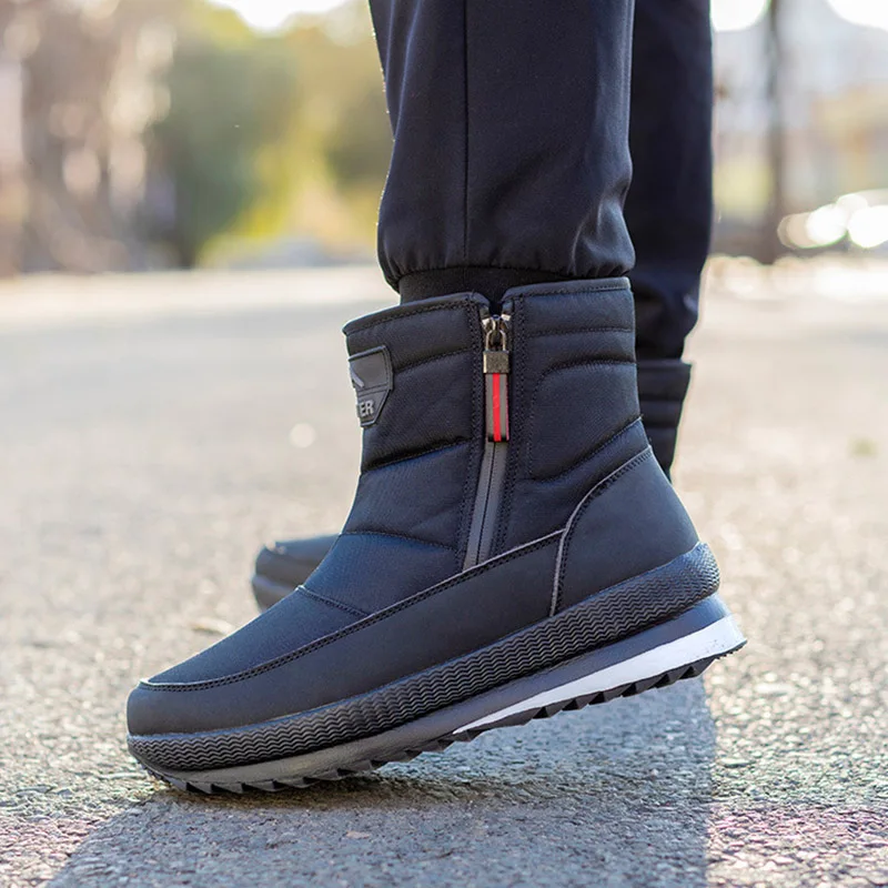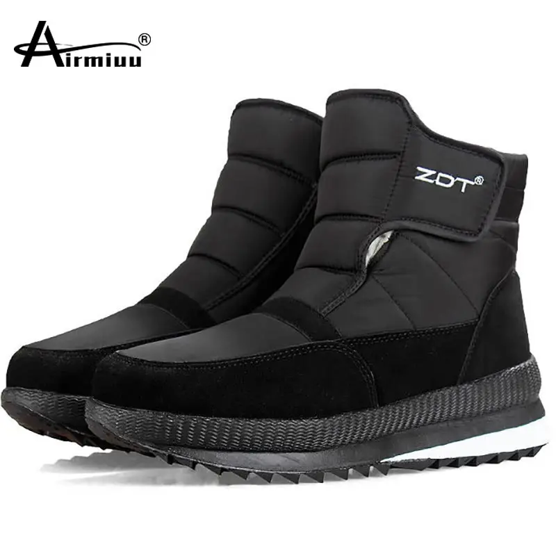 Мужские зимние ботинки, черные водонепроницаемые ботильоны на нескользящей толстой плюшевой подкладке, повседневные кроссовки для пар, размеры 36-47, 2019