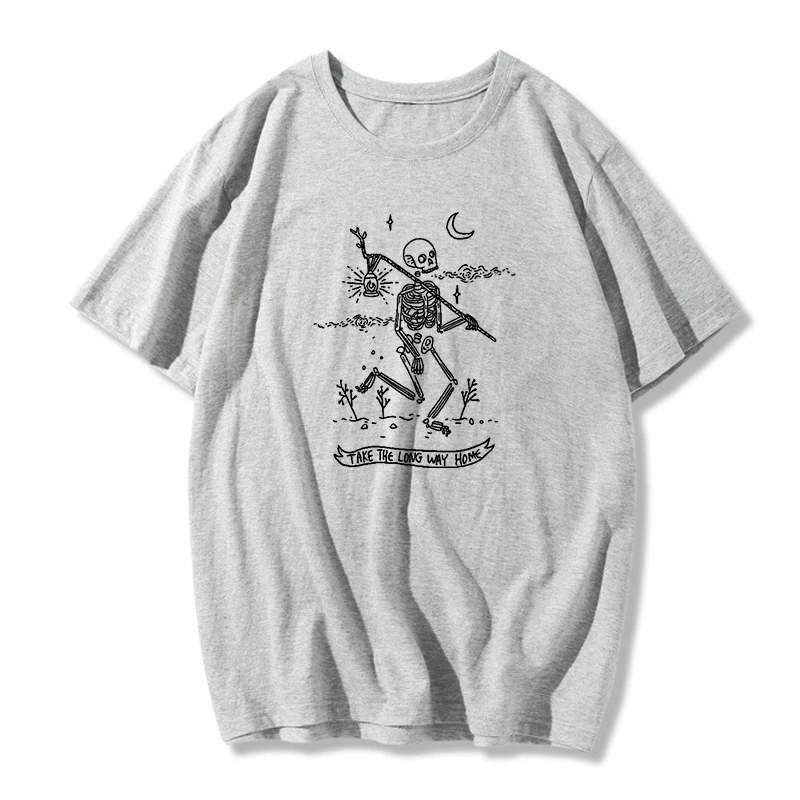 Женская футболка с принтом скелета, Готическая свободная футболка в стиле Харадзюку с надписью на длинном ходу, в стиле панк, ulzzang