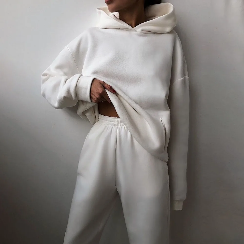Женский спортивный костюм, Осенний флисовый свитшот, комплект из двух предметов, повседневный Однотонный женский спортивный костюм большого размера с капюшоном, комплекты с длинными брюками