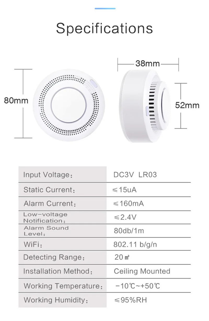 Датчик дыма Tuya с Wi-Fi и управлением через приложение