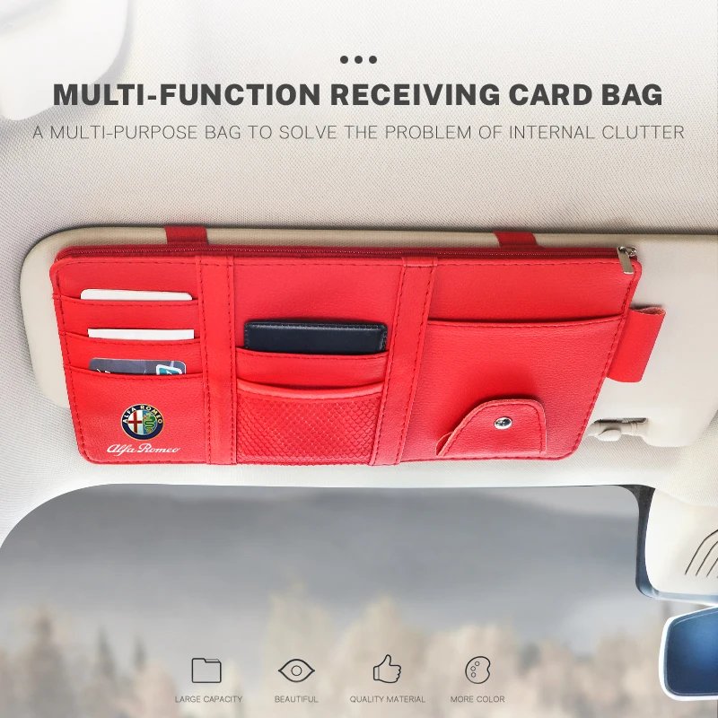 Автомобильный контейнер для хранения, зажим для очков, солнцезащитный козырек, кожаная сумка, карта для Alfa Romeo Giulietta GT 159 147 156 Mito Brera Giulia F1 Stelvio
