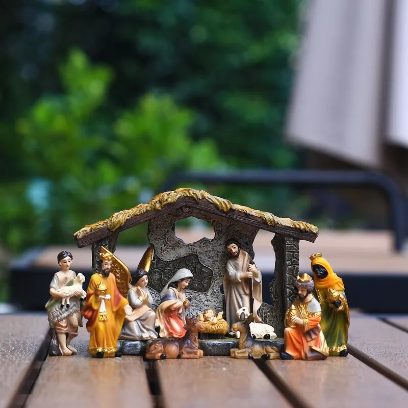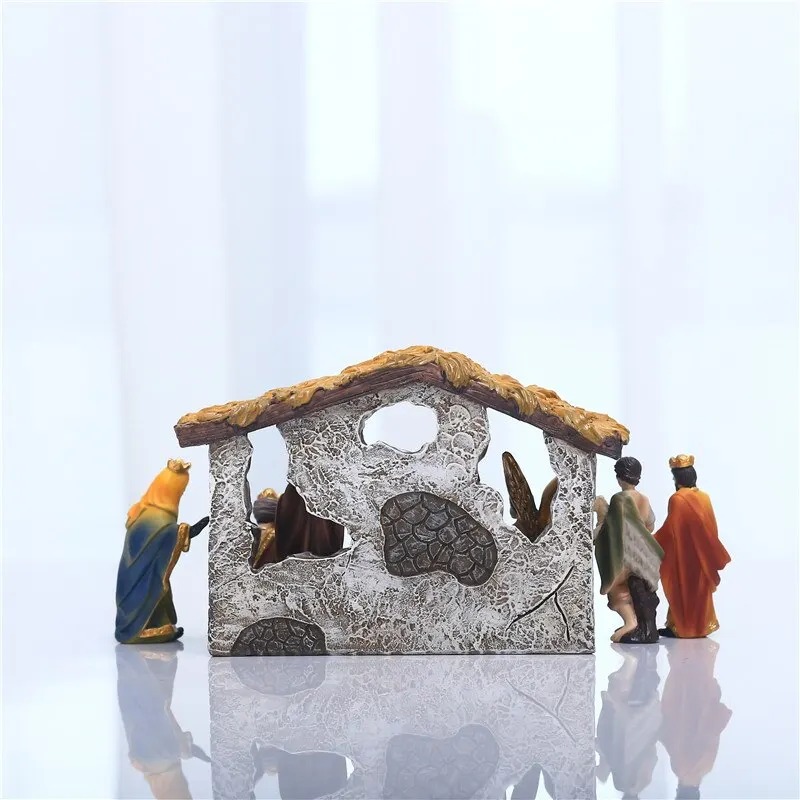 Миниатюрная Статуэтка для дома и Рождества, детская кроватка с Иисусом, статуэтка, орнамент из смолы, религиозная церковь, католический подарок