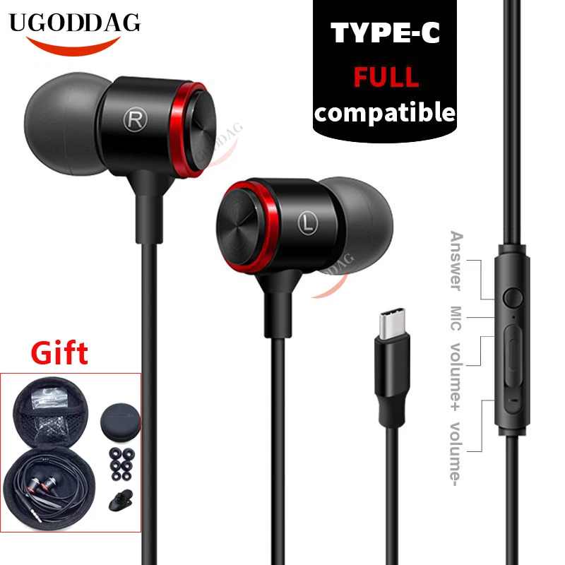 Проводные наушники типа C, гарнитура в ухо, стерео наушники без рук, регулятор громкости, USB C, наушники с дополнительным басом с микрофоном для HTC OnePlus
