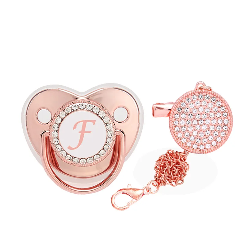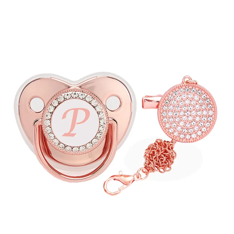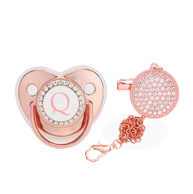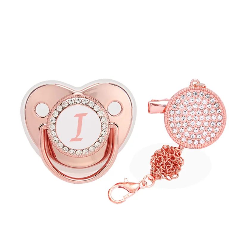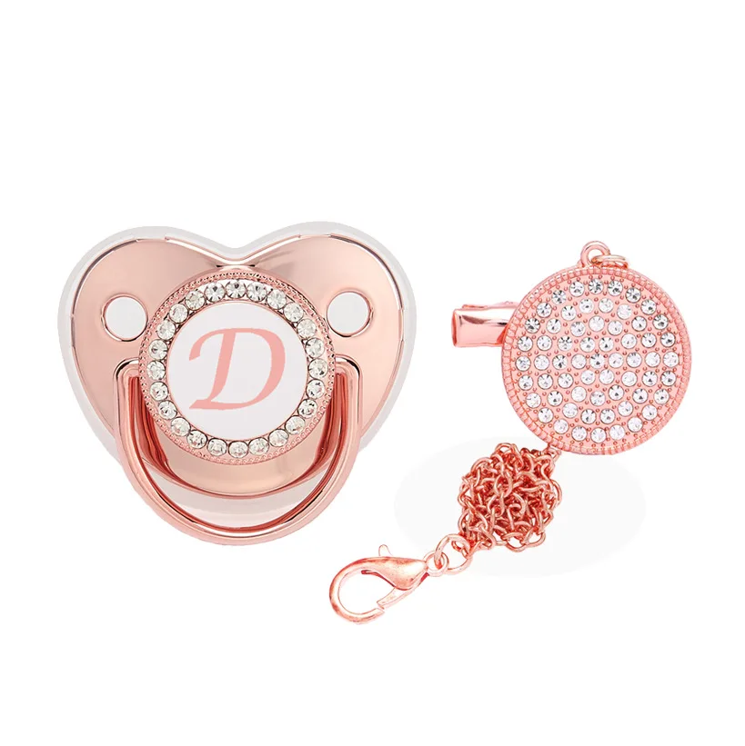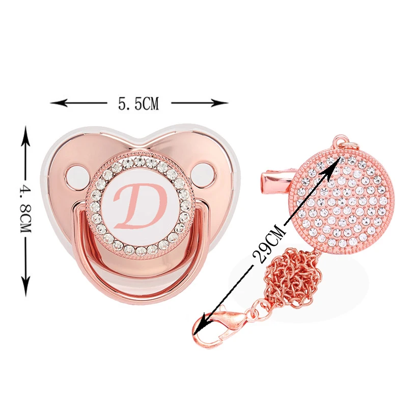 Детские соски для новорожденных с цепочкой, розовое золото, блестящий силиконовый держатель для соски для младенцев, Детские пустышки для сосков, манекен для детского душа, подарки