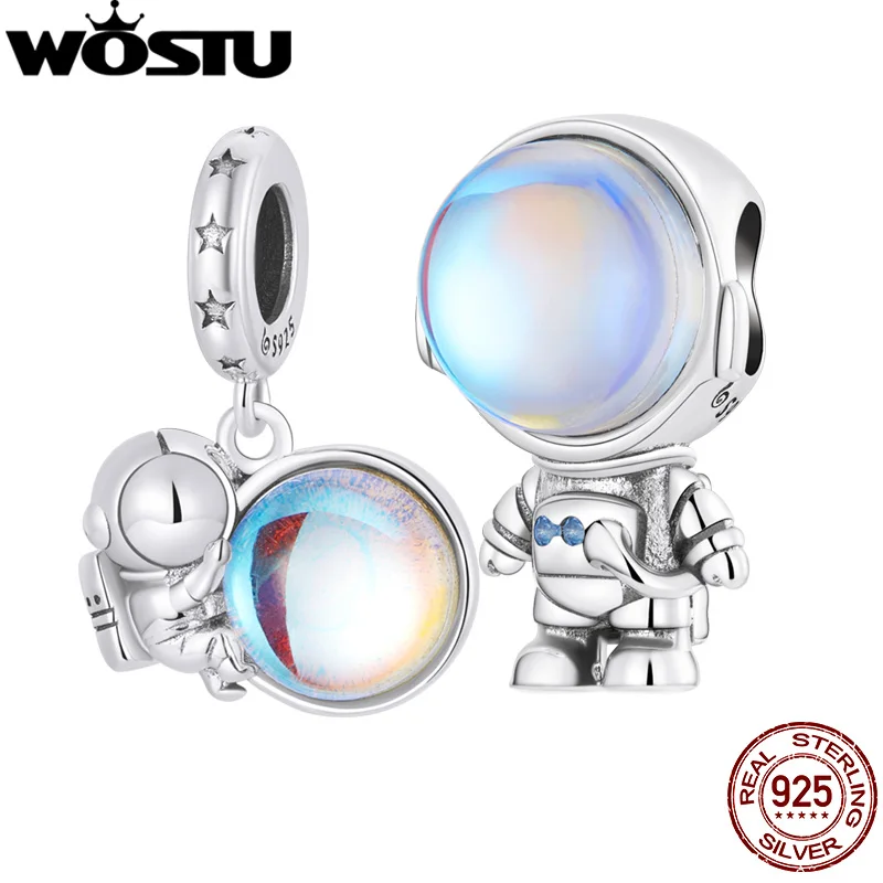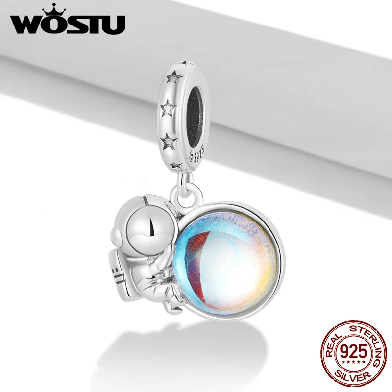 WOSTU 925 стерлинговый серебряный с лунным камнем Радужный Шарм ожерелье бусы Подходит оригинальный браслет космический астронавт стиль ювелирные изделия подарок