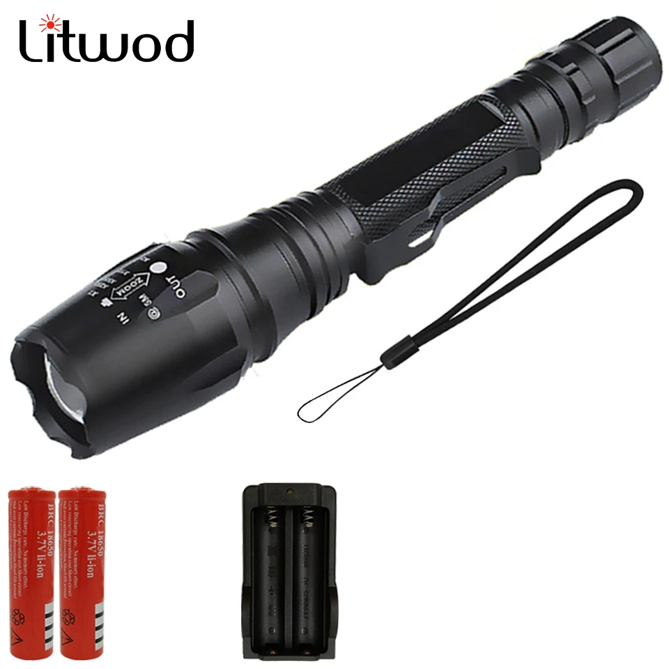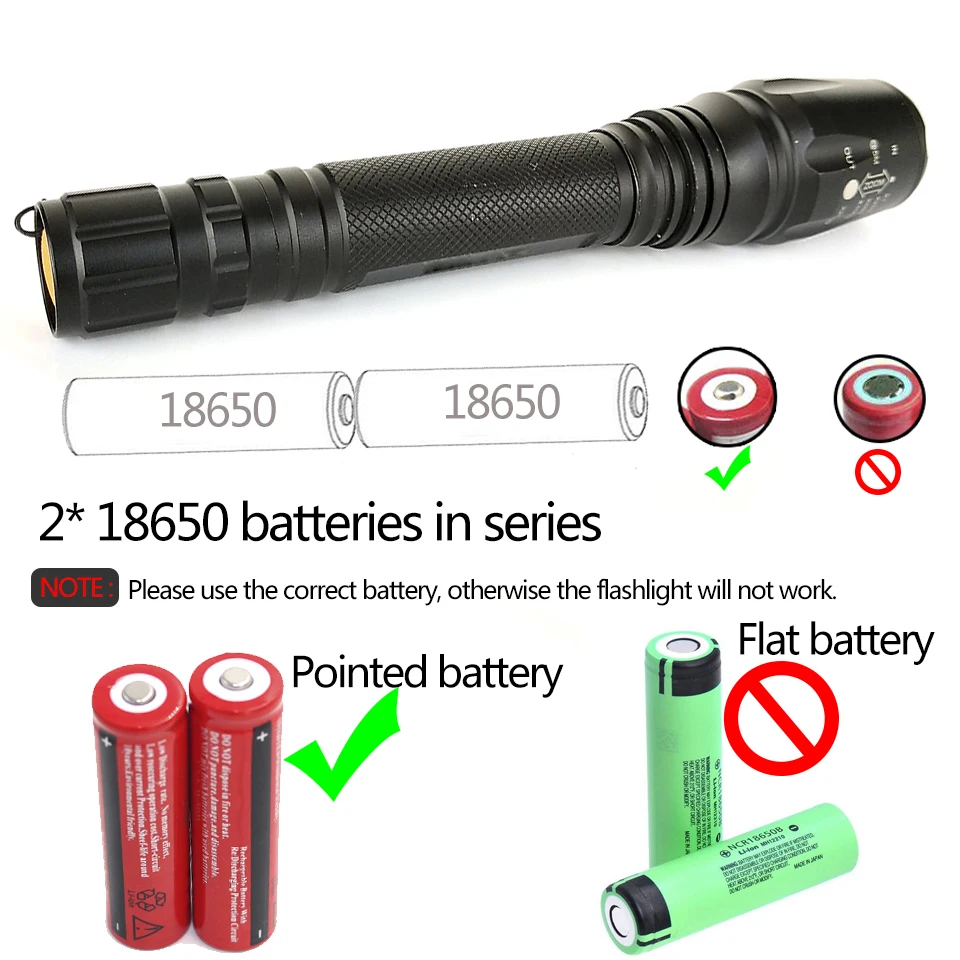 Светодиодный алюминиевый фонарик с фокусировкой, 8000 Люмен, перезаряжаемый аккумулятор 2*18650, водонепроницаемый уличный фонарь для кемпинга