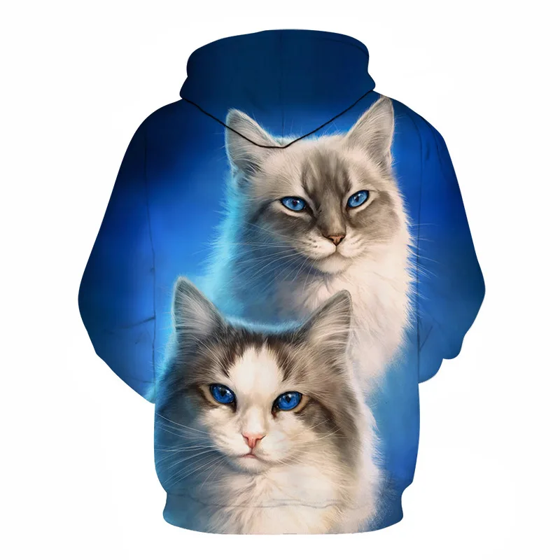 Толстовка с длинным рукавом для мужчин и женщин, индивидуальный пуловер с 3D принтом кошек и животных, свитшот для девочек
