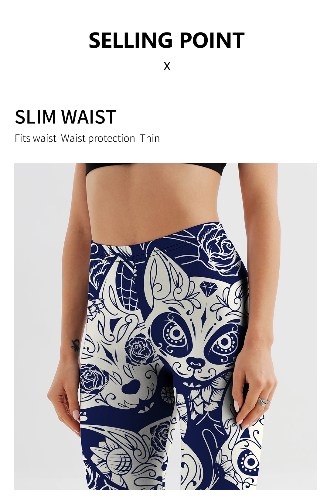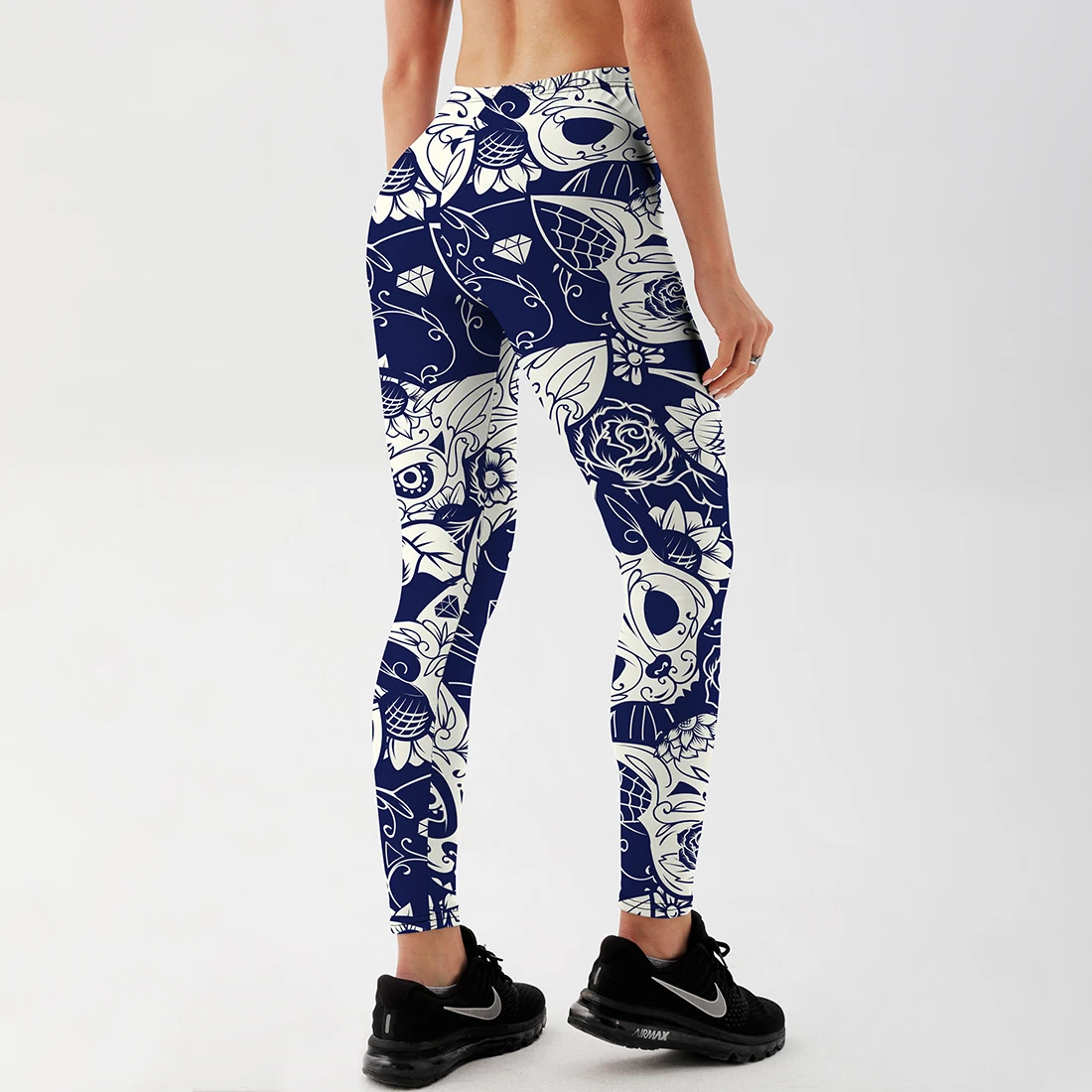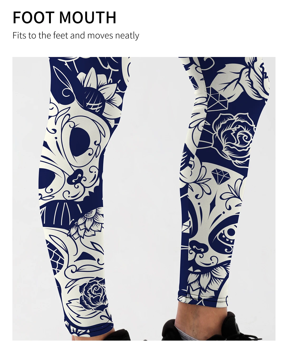 Леггинсы женские, с высокой талией, для фитнеса, с принтом черепа и...