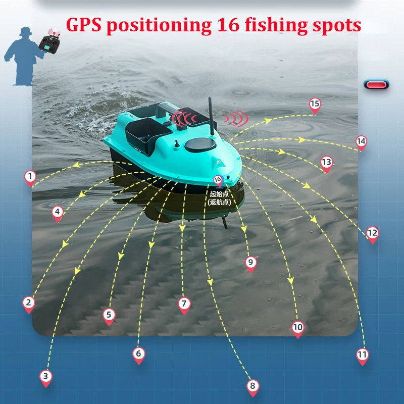 GPS 500 м радиоуправляемая рыболовная лодка с пультом дистанционного управления, 16 рыболовных пятен, автоматический круиз-контроль, 2 кг загрузки, 3 хоппера, радиоуправляемая лодка с рыбопоисковым устройством