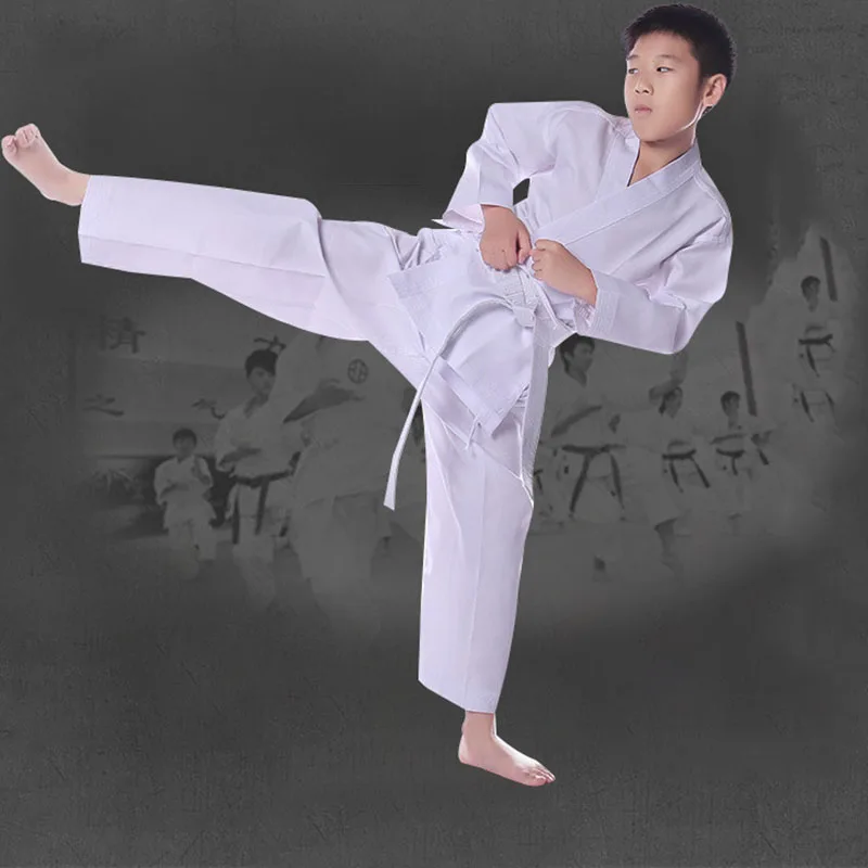 Униформа для каратэ, белая униформа для тхэквондо с поясом, эластичный пояс для детей, спортивные тренировки, фитнеса, тренажерного зала