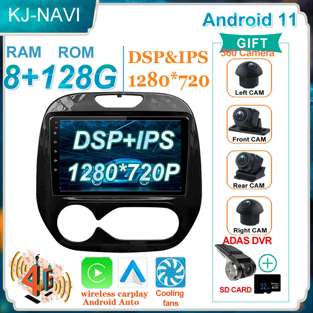 Экран Мультимедийный проигрыватель 9 дюймов 8 + 128G Android 11 для Renault Kaptur Captur 2016 - 2019 с навигацией автомобильное GPS РАДИО WiFi 4G LTE QLED