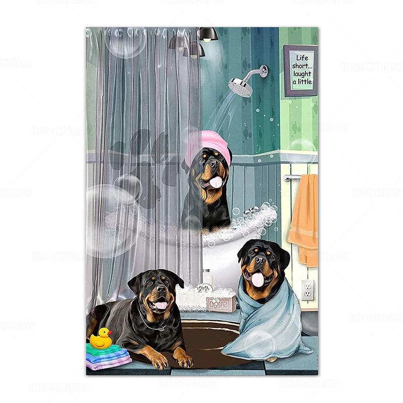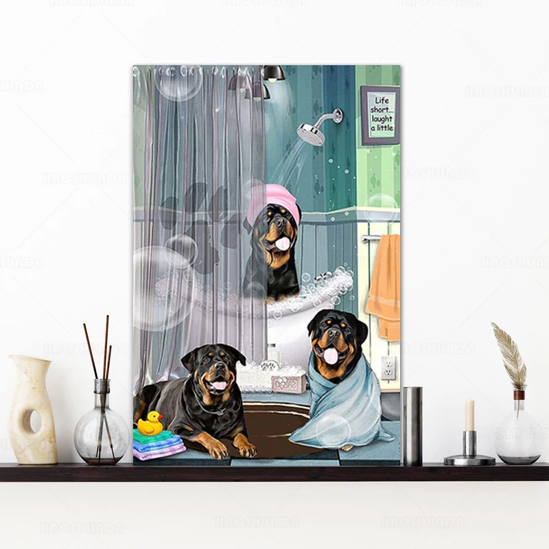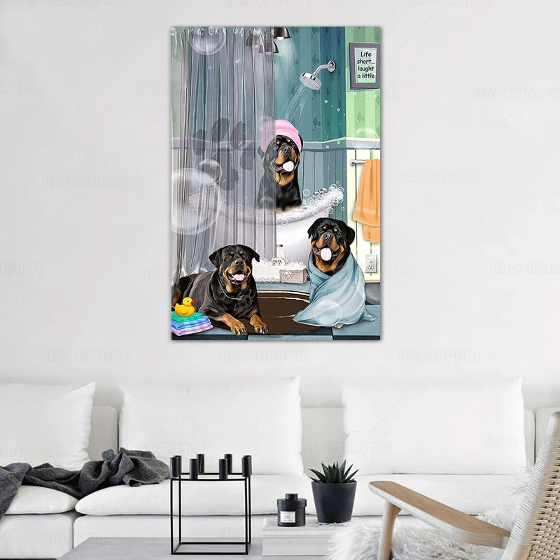 Картина с тремя симпатичными собаками Ротвейлер в ванной холст стена искусство ванная комната фотопечать на холсте для гостиной в рамке