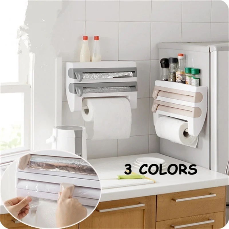 Настенный кухонный Органайзер, диспенсер для обертки, резак для фол...