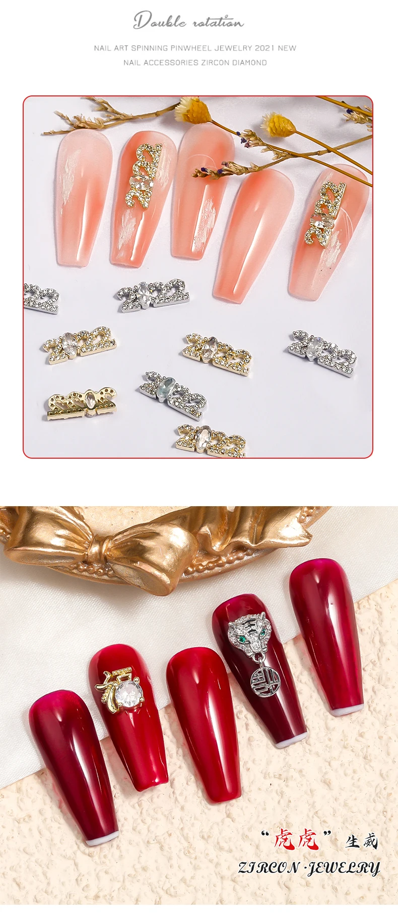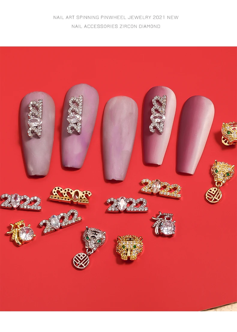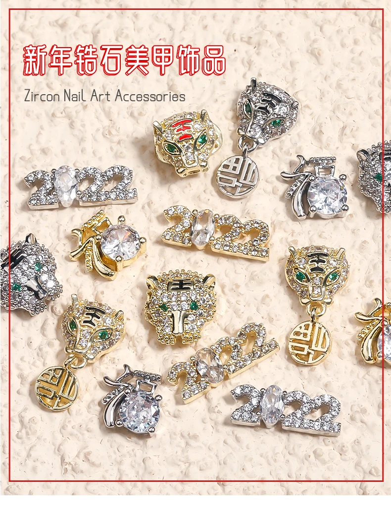 2022 новогодние металлические ювелирные изделия из циркона для дизайна ногтей тигр подвеска с надписью на удачу украшение высшее качество хрустальные маникюрные алмазные подвески