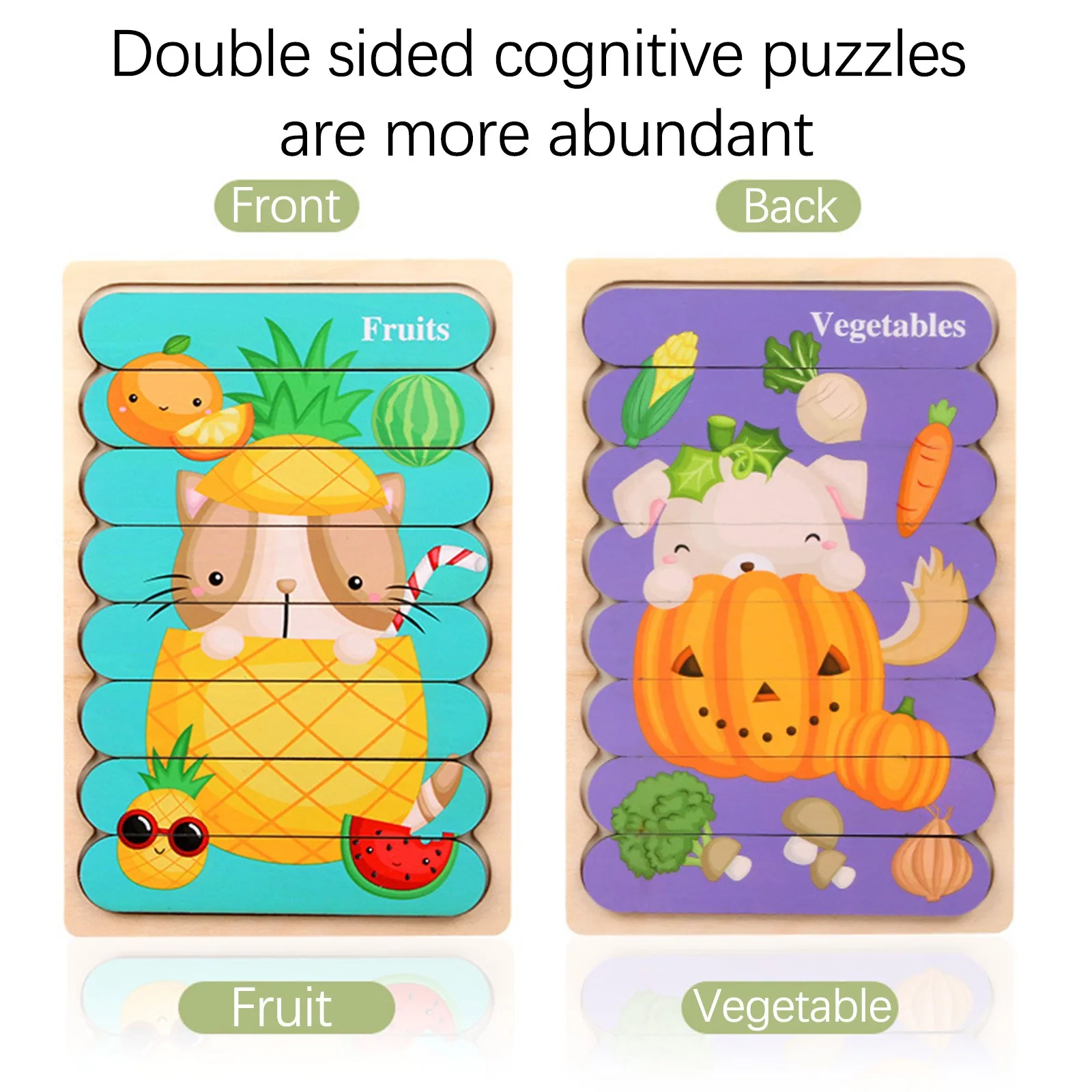 Детская деревянная игрушка, двухсторонняя 3D головоломка в виде пол...