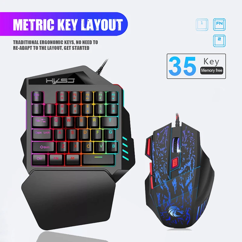 Проводная игровая клавиатура с подсветильник кой, 5500 DPI, 7 кнопок