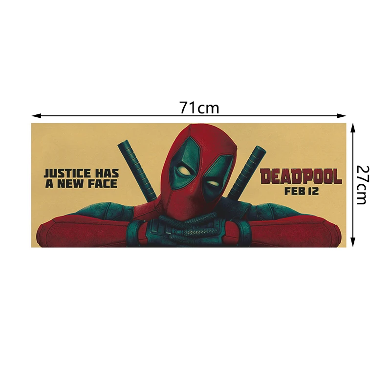 Наклейки аниме постеры Дэдпул Марвел домашний интерьер гостиная спальня украшения картины Marvel постер бумага настенная бумага sИнформация о продукте:1. Материал: бумага2. Размер: 71x27см3. Цвет: постеры 100% реальности, но из-за разницы в цвете изображения реальности, так что, скорее всего, вы получите постеры, и вы увидите, что фотографии в цвете немного отличаются.4. Погрешность в 1-3 см, измеренная вручную, находится в пределах нормального диапазона.
