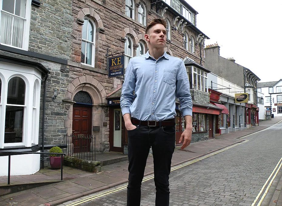 Ремень мужской из натуральной кожи с винтажной пряжкой с язычком