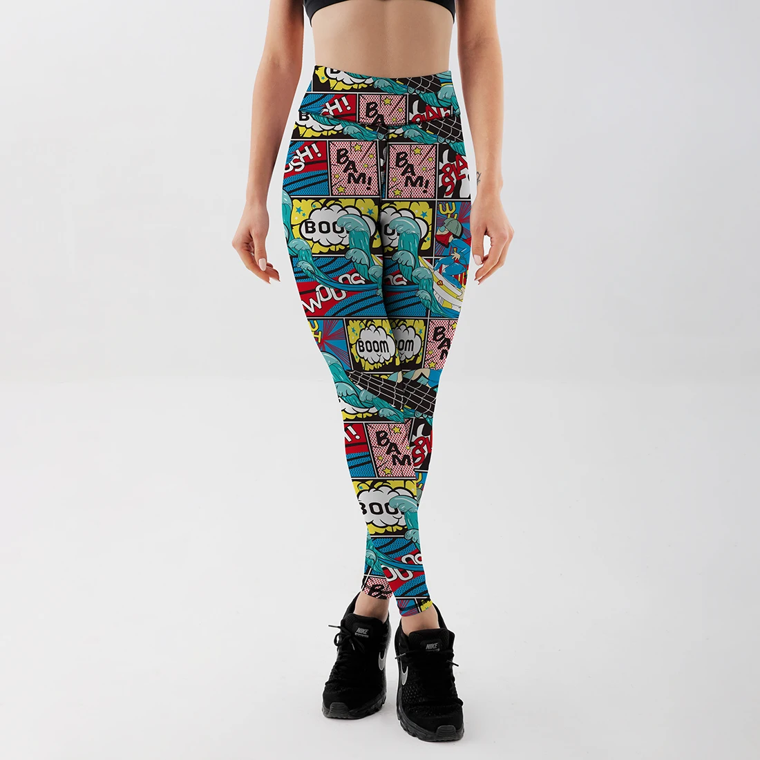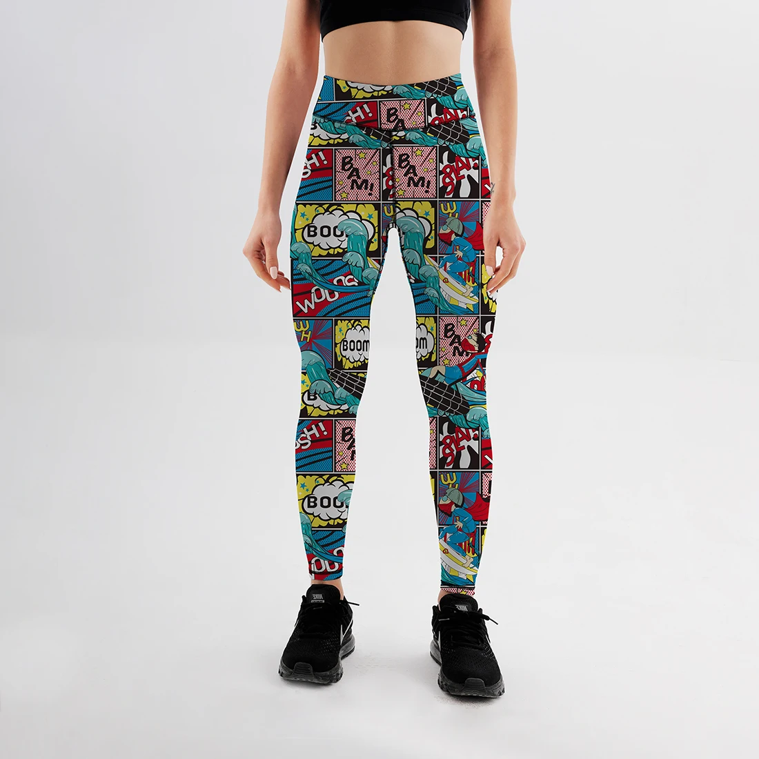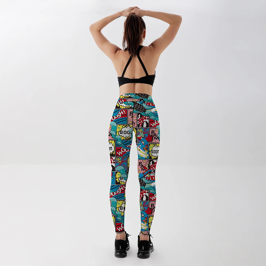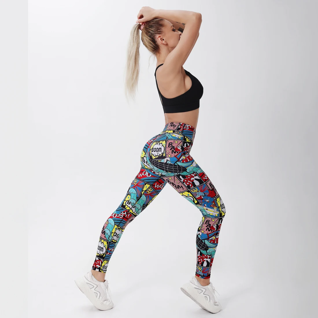 Леггинсы женские, с высокой талией, пуш-ап, с мультяшным принтом, Б...