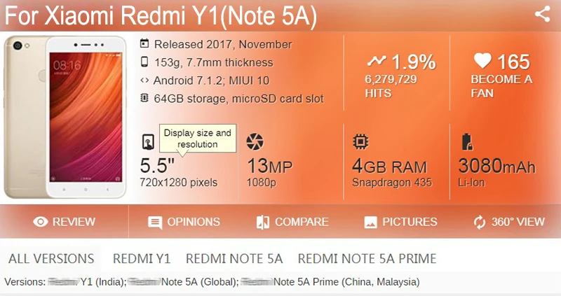Номер моделиFor Redmi Note 5A /Y1 Lite /For Redmi Note 5A Prime /Y1