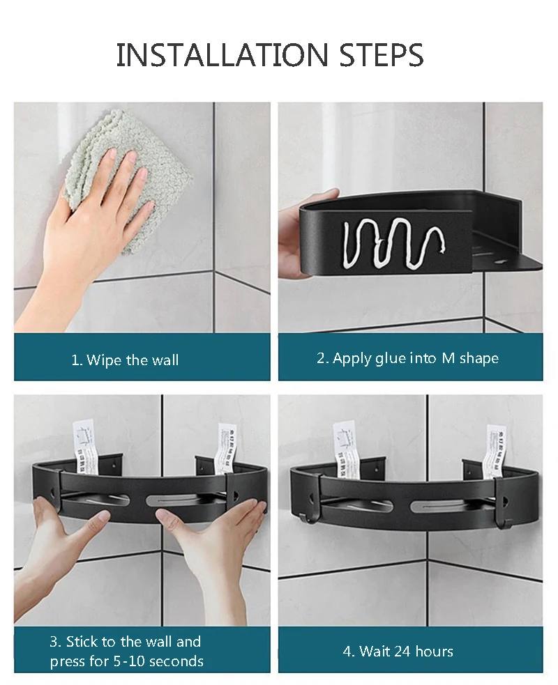 1. Полка изготовлена из высококачественного алюминиевого сплава, а поверхность устойчива к коррозии. Подходит для влажных сред, таких как ванные комнаты (даже душ), кухни и т. д.