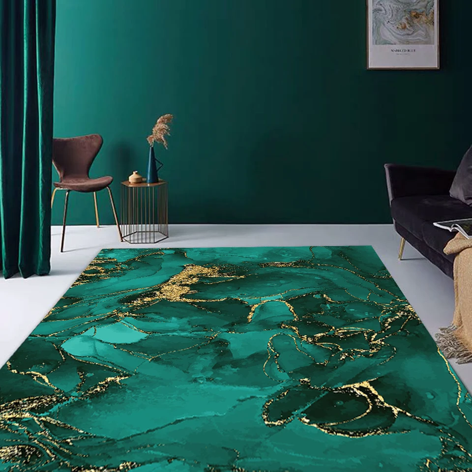 Современный роскошный черный, зеленый, золотой ковер для гостиной, абстрактный мраморный коврик для спальни, кухни, домашнего декора, нескользящий коврик для пола