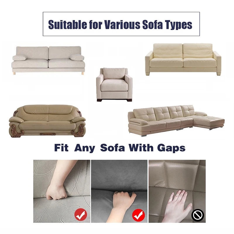 Наш чехол для дивана подходит для дивана, который имеет зазор, между сидением со спинкой и подлокотником. (Пожалуйста, убедитесь, что ваш диван Имеет глубокий зазор Проскальзывание пенопласта перед покупкой. Наш чехол для дивана не подходит для дивана с мелким зазором. )
