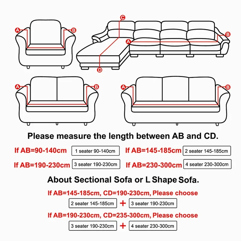 Для l-образного или углового или секционного дивана, который в сочетании с 2 или 3 части отдельно,YOuНужно заказать 2 или 3 чехла для него. Размер чехла будет зависеть от длины AB и CD линий.