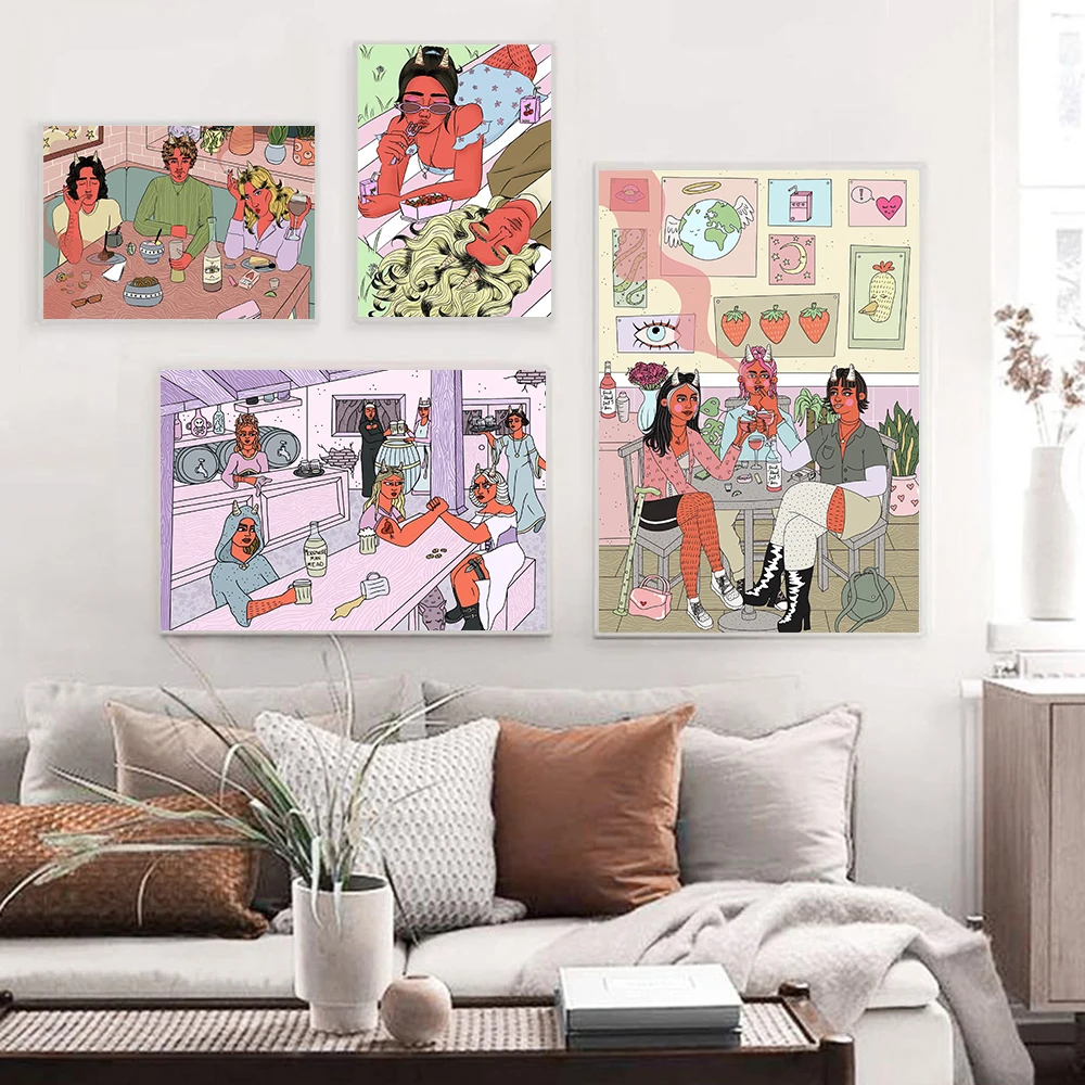 Модный настенный постер на холсте в скандинавском стиле для кухни, картина на стену для девочек, Современные внутренние картины, настенные картины для декора гостиной