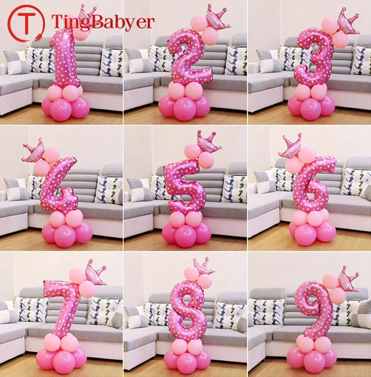 1, 2, 3, 4, 5, 6, 7, 8, 9 лет, с номером на день рождения фольга, латекс, воздушные шары для девочек, принцессы, украшения для вечеринки, Детские шарики для будущей мамы