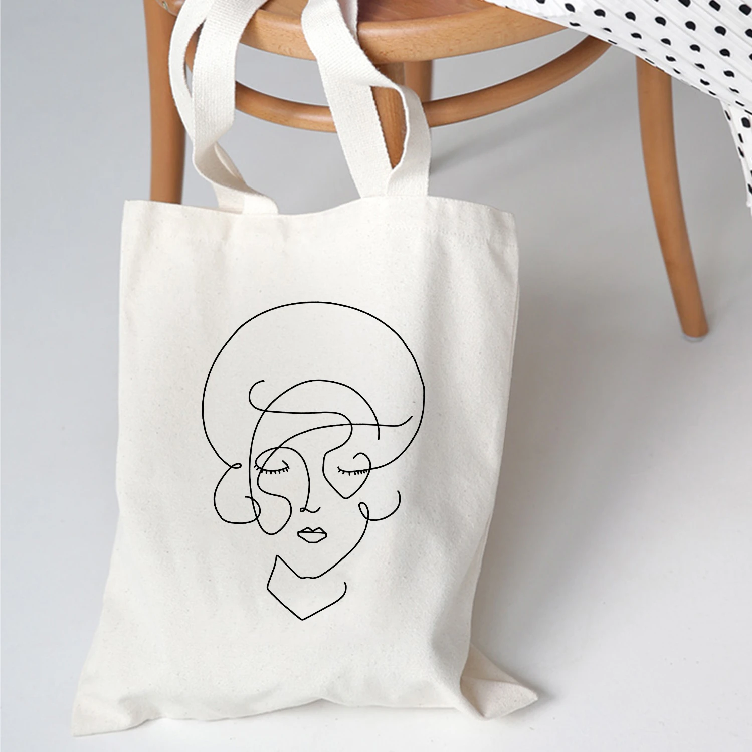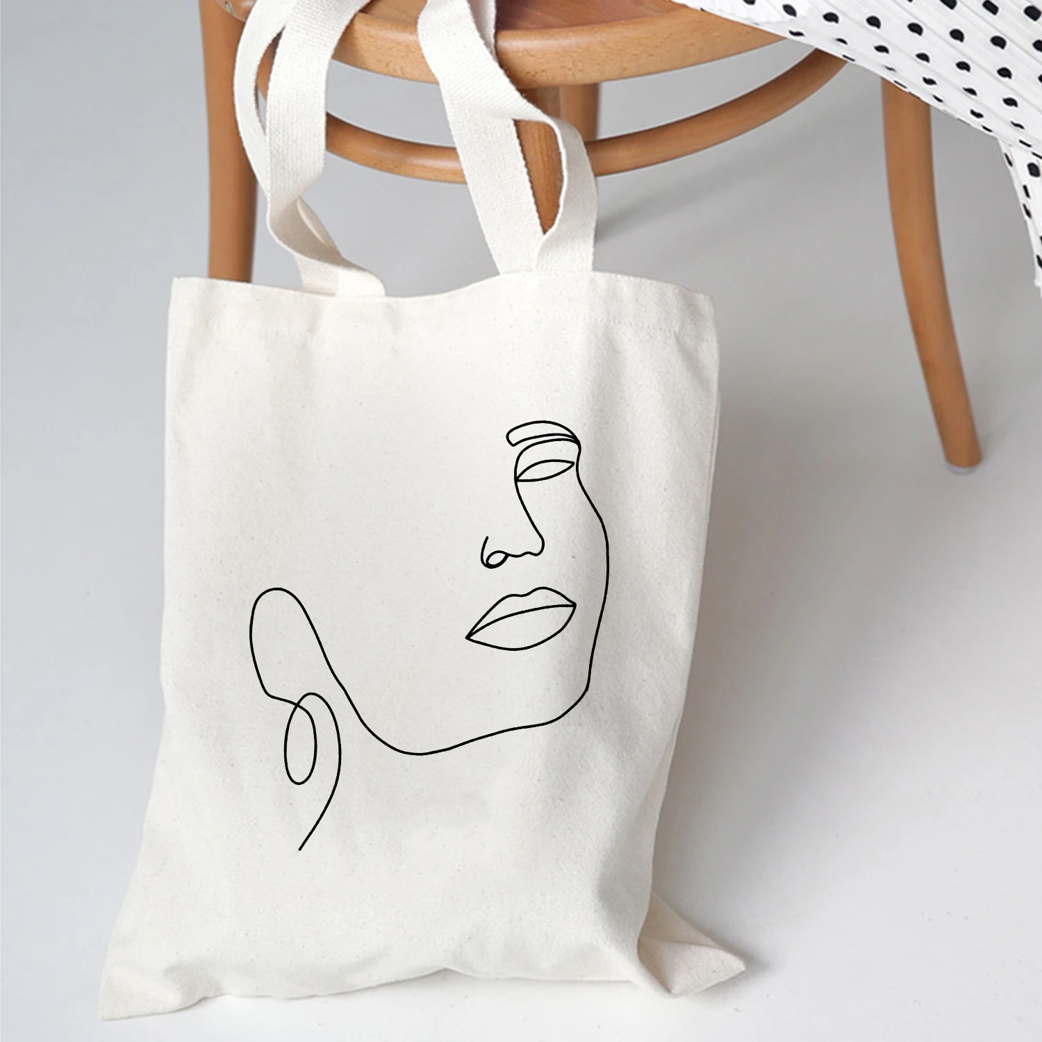 Холщовая Сумка-тоут с абстрактным изображением лица, женская сумочк...